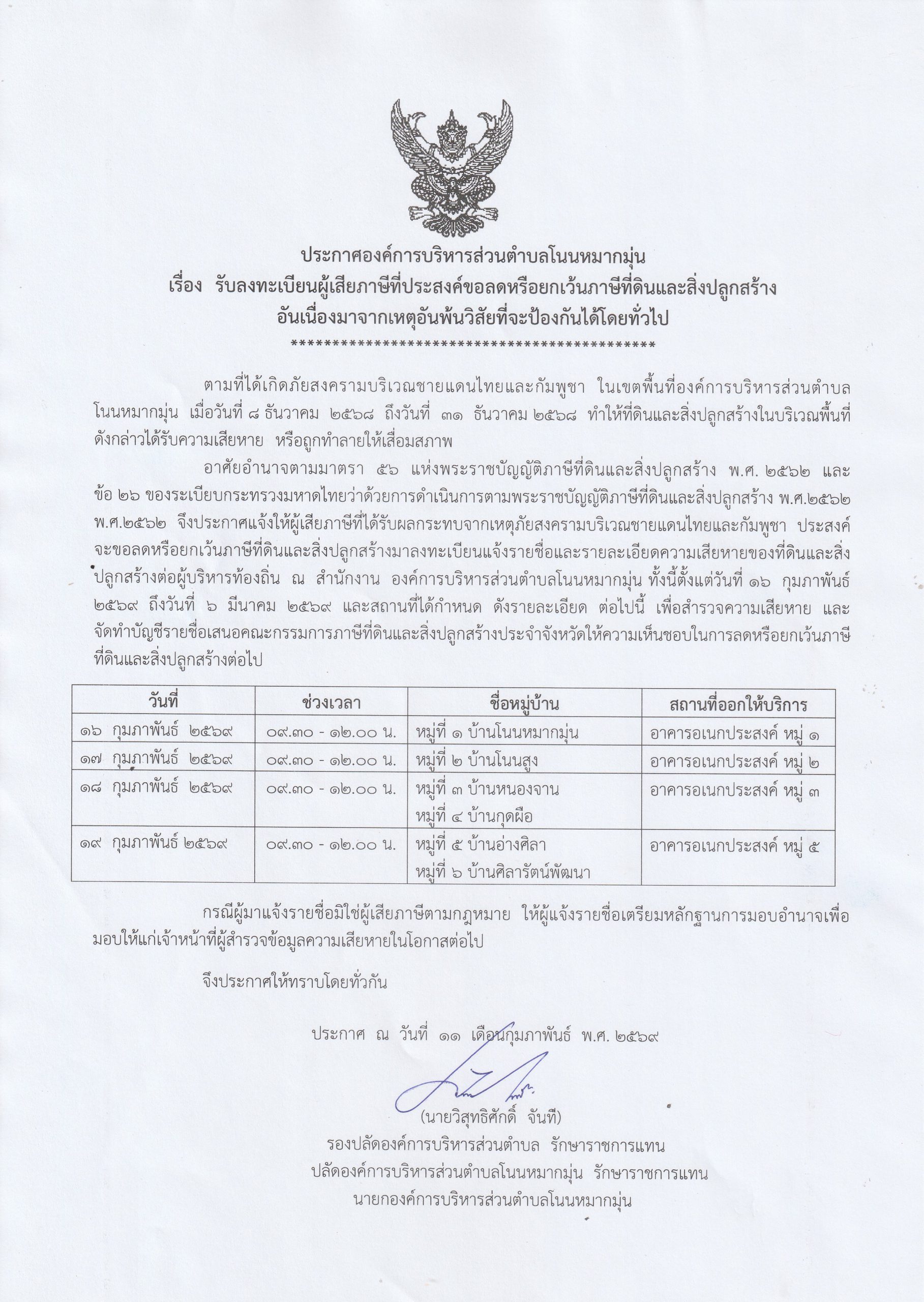 ประกาศบัญชีรายชื่อผู้สมัครรับเลือกตั้งนายก อบต.โนนหมากมุ่นที่ได้รับสมัครรับเลือกตั้งและไม่ได้รับสมัครรับเลือกตั้ง